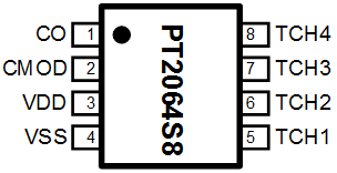 PT2064 是一款电容式触摸控制 ASIC,支持 4 通道触摸输入,1 线码值输出。具有低功耗、高抗干扰、宽工作电压范围的突出优势。