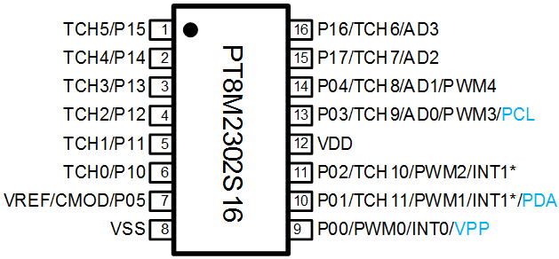 PT8M2302 是一款可多次编程(MTP)A/D型8位MCU,其包括2K*16bit MTP ROM、256*8bit SRAM、ADC、PWM、Touch等功能,具有高性能精简指令集、低工作电压、低功耗特性且完全集 成触控按键功能。为各种触控按键的应用,提供了一种简单而又有效的实现方法。广泛应用于触摸 台灯、小家电、消费类电子产品等电子应用领域。